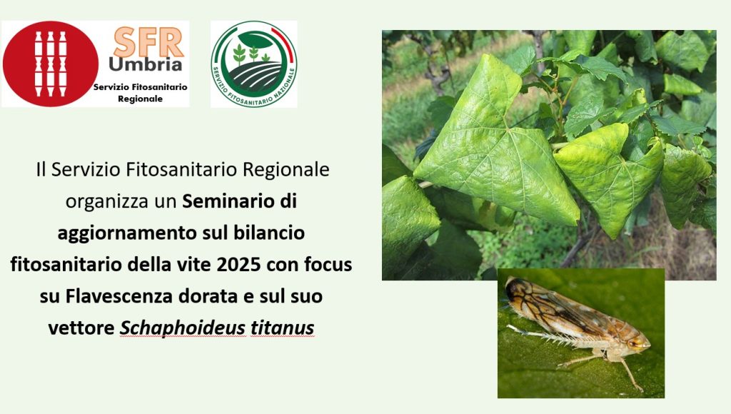 Il Servizio Fitosanitario Regionale con Determina Dirigenziale n.407 del 16/01/2026 ha aggiornato il Piano di Azione Regionale per la prevenzione della Flavescenza dorata della vite e al fine di divulgarne i contenuti e fare il punto sullo stato dell'arte ha organizzato n.3 incontri che si terranno presso i principali Consorzi regionali.